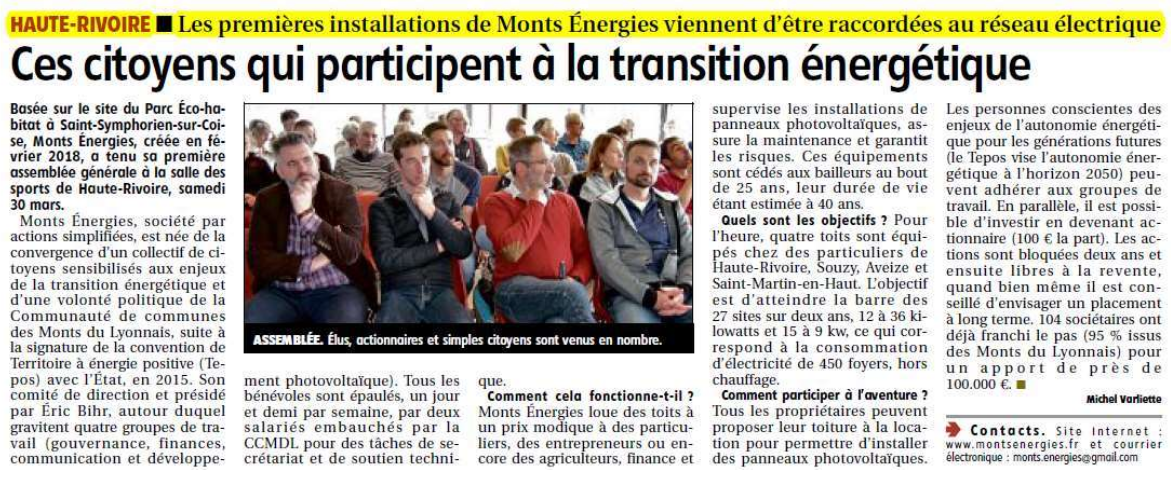 Le Pays 4 avril 2019 Assemblée Générale de Mons Énergies